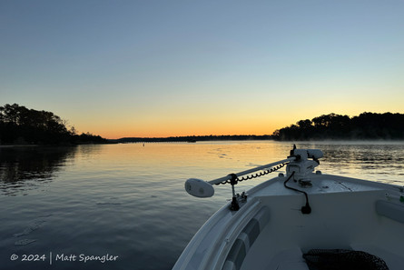 We woke up early, loaded up the boat, and hit the water around dawn. We cruised for about 3 miles up the Intracoastal Waterway, then hit the Little River for 3 more miles until the Little River Inlet (which is basically on the SC-NC border). Sunrise over the marsh near the inlet was spectacular, and the combination of salt spray and 40-something degree temperatures quickly woke us up!